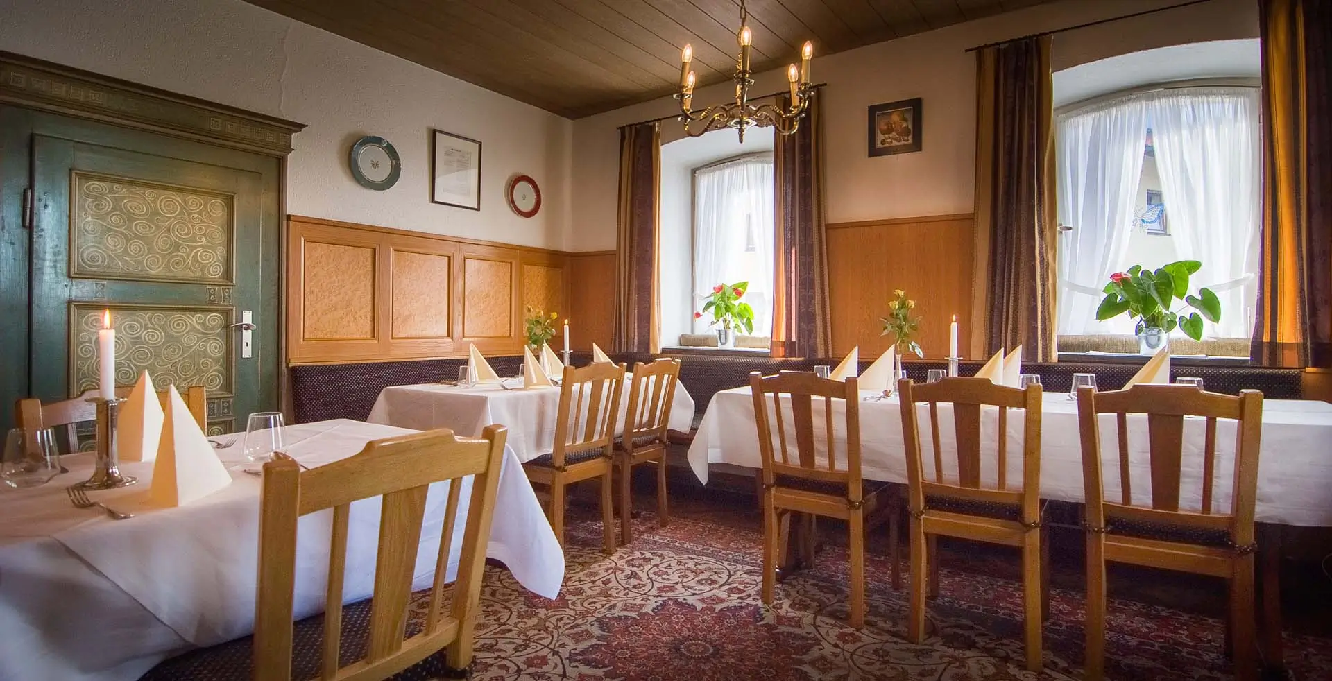 Unser Esszimmer lädt zum Verweilen ein und ist der ideale Ort für private Feiern, Familienfeste oder gesellige Abende mit Freunden. Ob festlich eingedeckt oder locker und ungezwungen – wir gestalten Ihre Feier ganz nach Ihren Wünschen.